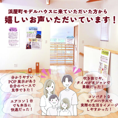 浜屋町モデルハウスにお越し頂いた方から『自然素材に興味を持った』という感想をたくさんいただいております!