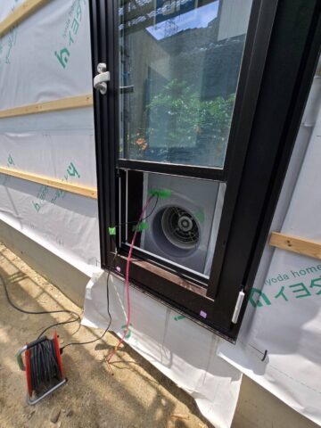 大きな掃出し窓が2つあるにもかかわらず、気密測定で高気密住宅が実証できました!