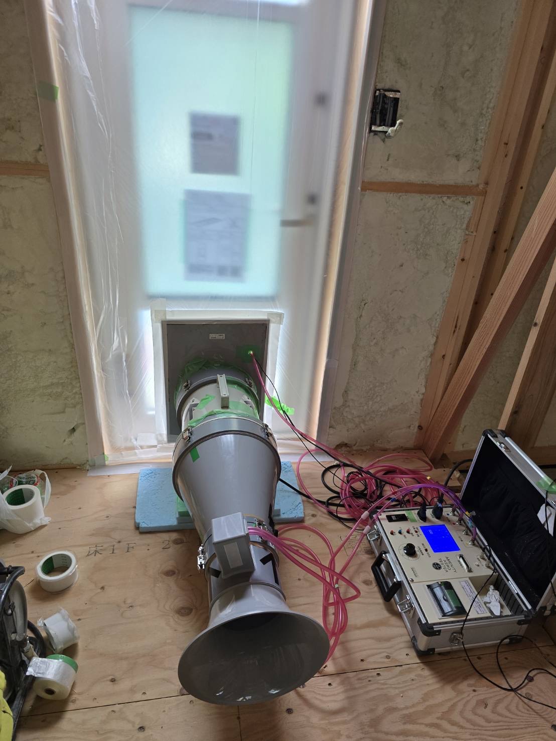 弊社では全棟で気密測定を行っており、先日の施工現場では C値=0.3 という結果でした。